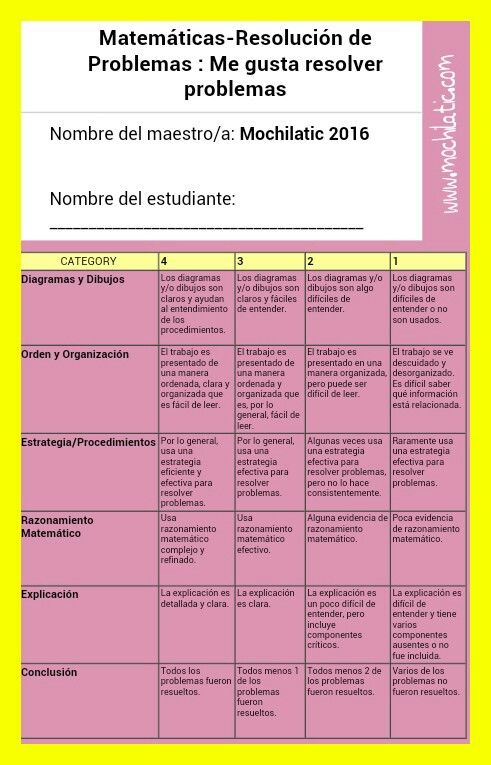 Rúbrica para evaluar problemas de matemáticas