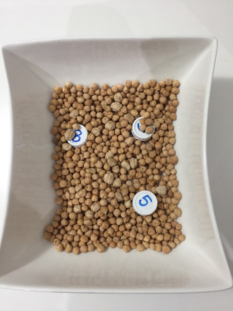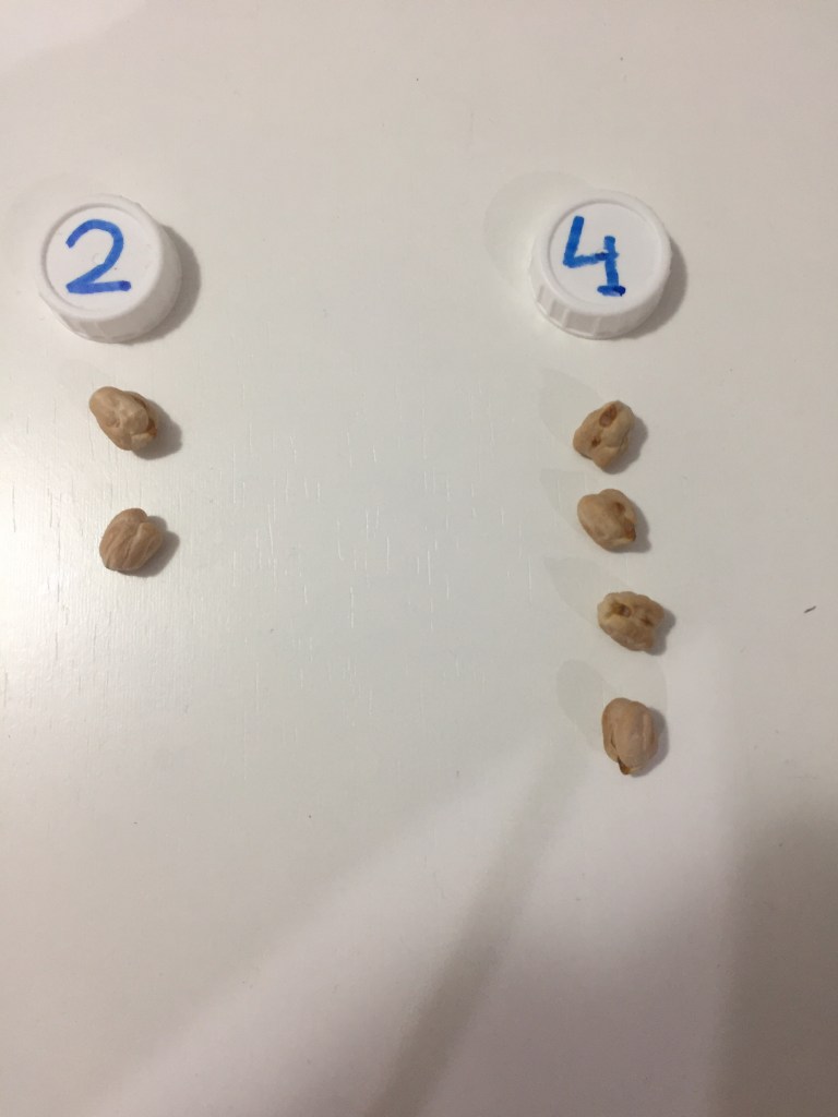 La primera actividad consistirá en la asociación de números con su cantidad (Garbanzos)